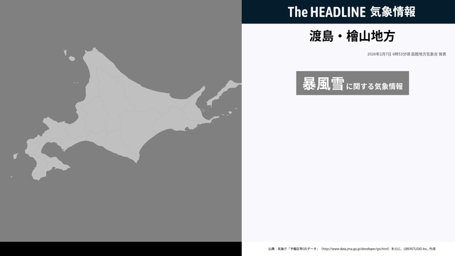 2月7日6時53分、函館地方気象台は、渡島・檜山地方に発表されている警報・注意報の経過、予測、防災上の留意点などを解説するために発表していた気象情報を更新した。