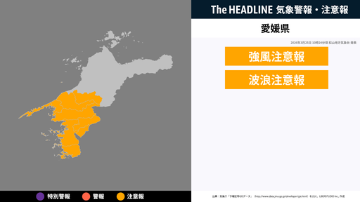 2月9日5時38分、松山地方気象台は、愛媛県に発表されている警報・注意報の経過、予測、防災上の留意点などを解説するために発表していた気象情報を更新した。
