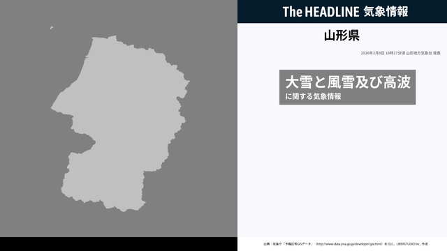 2月8日16時27分、山形地方気象台は、山形県に発表されている警報・注意報の経過、予測、防災上の留意点などを解説するために発表していた気象情報を更新した。
