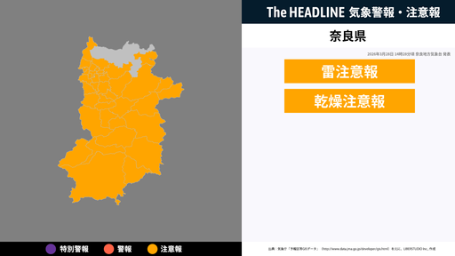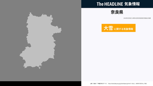 2月8日16時18分、奈良地方気象台は、奈良県に発表されている警報・注意報の経過、予測、防災上の留意点などを解説するために発表していた気象情報を更新した。