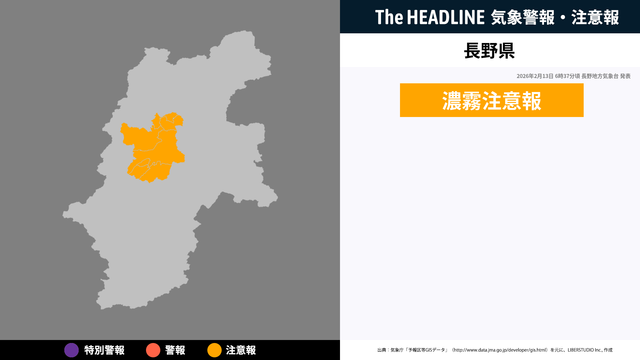 2月13日6時37分、長野地方気象台より長野県に濃霧注意報が発表された。