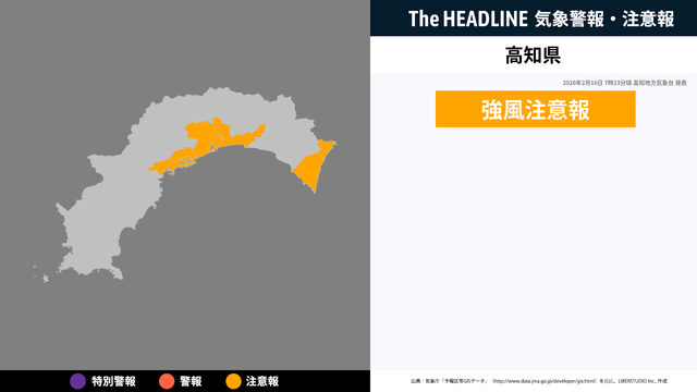 2月16日7時23分、高知地方気象台より高知県に強風注意報が発表された。