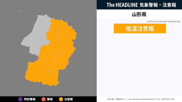 2月17日15時51分、山形地方気象台より山形県に低温注意報が発表された。