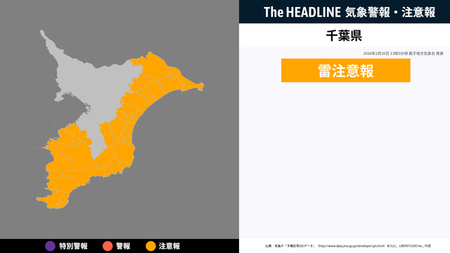 2月20日13時3分頃、千葉県に雷注意報が発表