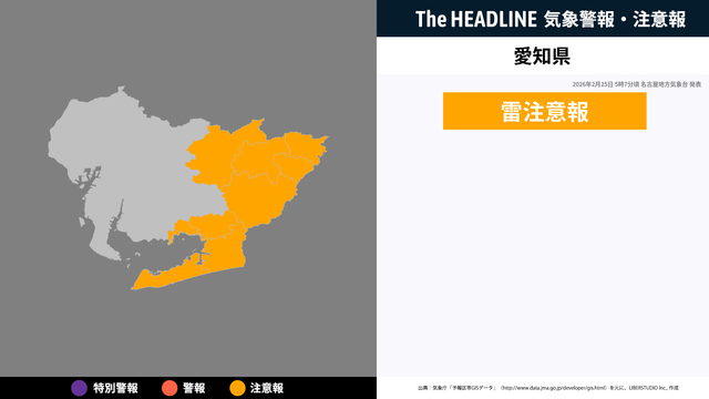 2月25日5時7分頃、愛知県に雷注意報が発表