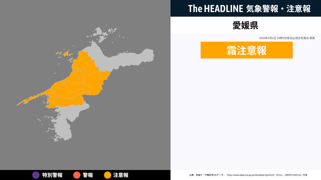 3月1日10時5分頃、愛媛県に霜注意報が発表