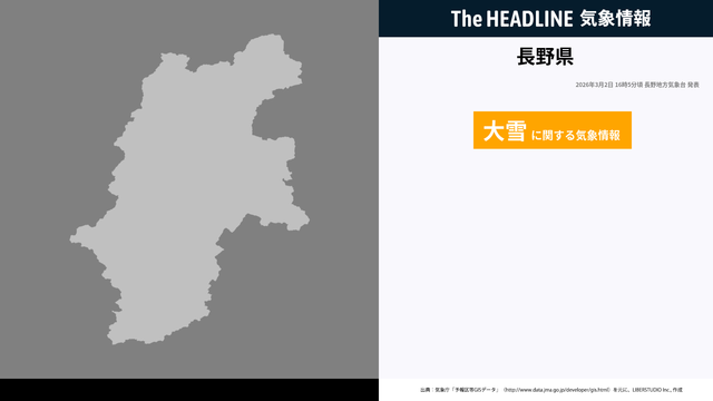 3月2日16時5分、長野地方気象台は、長野県に発表されている警報・注意報の経過、予測、防災上の留意点などを解説するために大雪に関する気象情報を発表した。