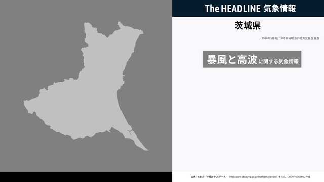 3月4日16時36分、水戸地方気象台は、茨城県に発表されている警報・注意報の経過、予測、防災上の留意点などを解説するために発表していた気象情報を更新した。