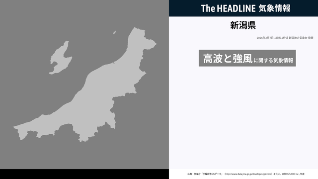 3月7日16時31分、新潟地方気象台は、新潟県に発表されている警報・注意報の経過、予測、防災上の留意点などを解説するために発表していた気象情報を更新した。
