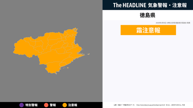 3月9日10時22分、徳島地方気象台より徳島県に霜注意報が発表された。