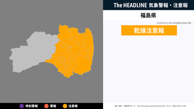 3月11日3時12分頃、福島県に乾燥注意報が発表