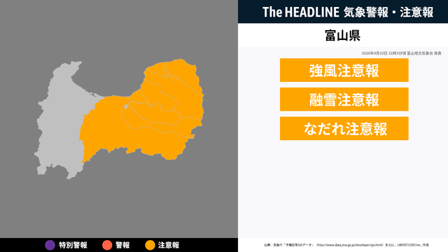 4月21日10時22分頃、富山県の融雪注意報が解除