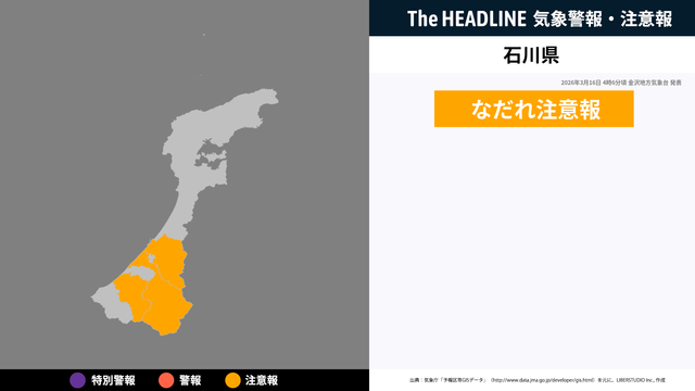 3月16日4時6分頃、石川県になだれ注意報が発表