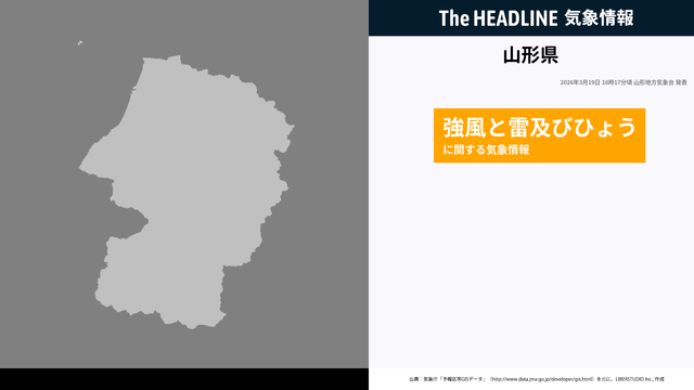 3月19日16時17分、山形地方気象台は、山形県に発表されている警報・注意報の経過、予測、防災上の留意点などを解説するために強風と雷及びひょうに関する気象情報を発表した。