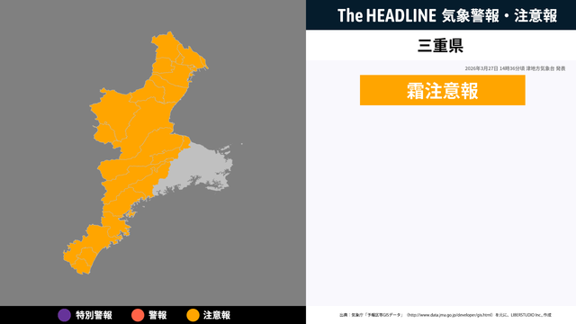 3月27日14時36分頃、三重県に霜注意報が発表