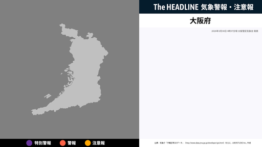 3月30日6時6分、大阪管区気象台は、警報・注意報に先立ち注意・警戒を呼びかけるため大阪府に発表していた気象情報を更新した。