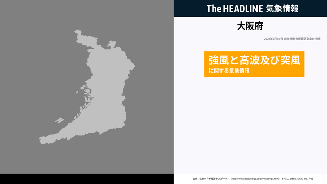 次の「強風と高波及び突風に関する大阪府気象情報」は、30日16時頃に発表する予定です。