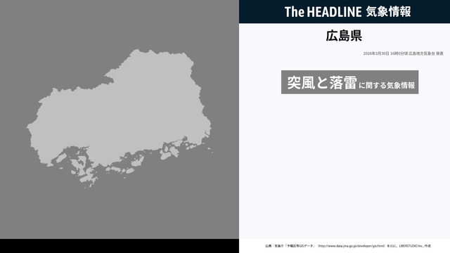 3月30日16時0分、広島地方気象台は、広島県に発表されている警報・注意報の経過、予測、防災上の留意点などを解説するために発表していた気象情報を更新した。