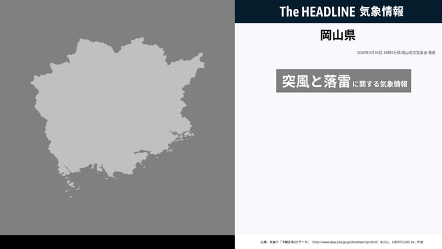 3月30日16時0分、岡山地方気象台は、警報・注意報に先立ち注意・警戒を呼びかけるため岡山県に発表していた気象情報を更新した。