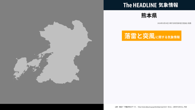 3月30日5時7分、熊本地方気象台は、熊本県に発表されている警報・注意報の経過、予測、防災上の留意点などを解説するために落雷と突風に関する気象情報を発表した。