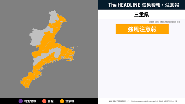 4月4日4時22分頃、三重県に強風注意報が発表