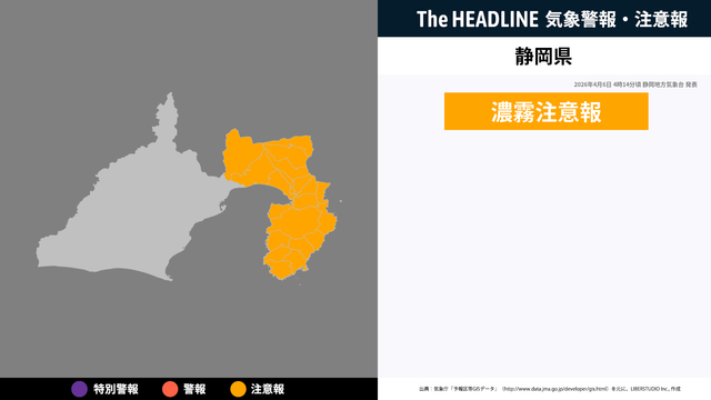 4月6日4時14分、静岡地方気象台より静岡県に濃霧注意報が発表された。