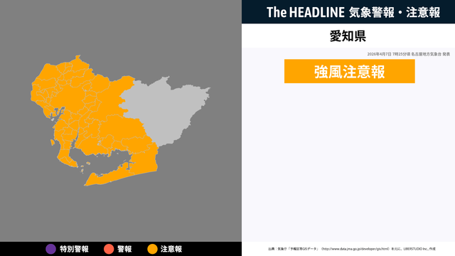 4月7日7時25分頃、愛知県に強風注意報が発表