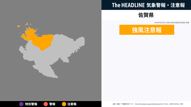 4月14日10時18分頃、佐賀県に強風注意報が発表