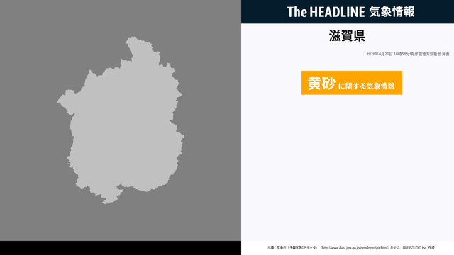 4月20日10時58分、彦根地方気象台は、警報・注意報に先立ち注意・警戒を呼びかけるため滋賀県に黄砂に関する気象情報を発表した。