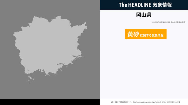 4月20日11時0分、岡山地方気象台は、警報・注意報に先立ち注意・警戒を呼びかけるため岡山県に黄砂に関する気象情報を発表した。