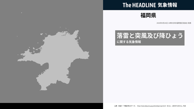 4月26日16時0分、福岡管区気象台は、福岡県に発表されている警報・注意報の経過、予測、防災上の留意点などを解説するために発表していた気象情報を更新した。