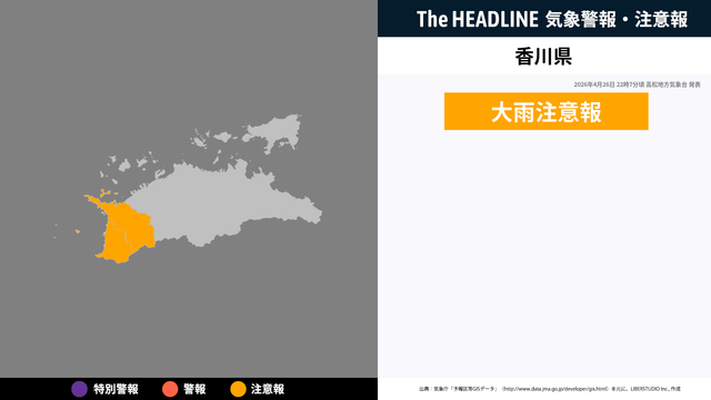 4月26日22時7分頃、香川県に大雨注意報が発表