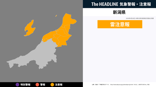 4月28日10時3分、新潟地方気象台より新潟県に雷注意報が発表された。