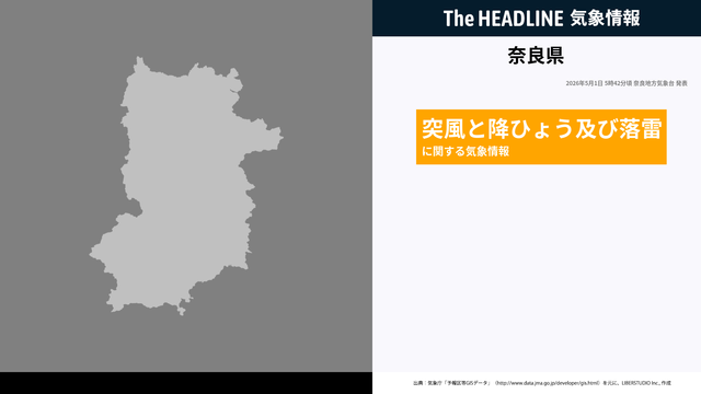 5月1日5時42分、奈良地方気象台は、奈良県に発表されている警報・注意報の経過、予測、防災上の留意点などを解説するために発表していた気象情報を更新した。