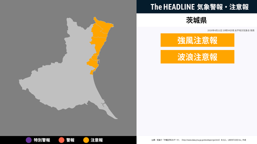 5月8日11時39分、水戸地方気象台は、茨城県に発表されている警報・注意報の経過、予測、防災上の留意点などを解説するために発表していた気象情報を更新した。