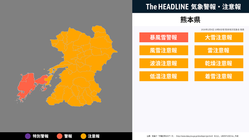5月7日16時30分、熊本地方気象台は、熊本県に発表されている警報・注意報の経過、予測、防災上の留意点などを解説するために発表していた気象情報を更新した。