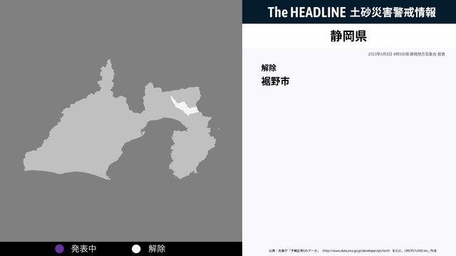 5月8日8時5分、静岡県の土砂災害警戒情報が解除された