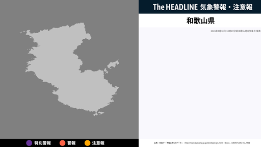 6月3日11時3分、和歌山地方気象台は、和歌山県に発表されている警報・注意報の経過、予測、防災上の留意点などを解説するために発表していた気象情報を更新した。