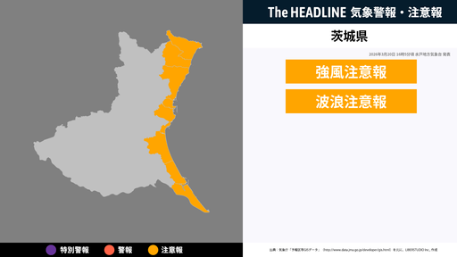 6月3日17時12分、水戸地方気象台は、茨城県に発表されている警報・注意報の経過、予測、防災上の留意点などを解説するために発表していた気象情報を更新した。