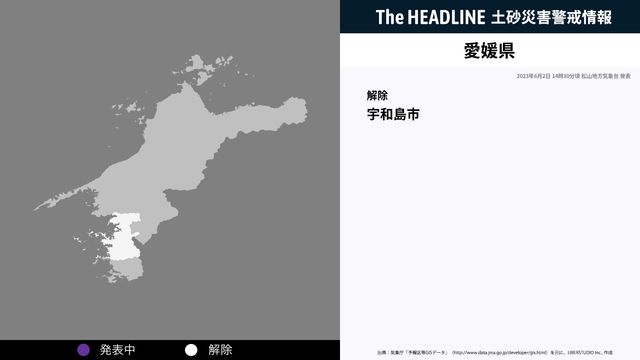 6月2日14時30分、愛媛県の土砂災害警戒情報が解除された