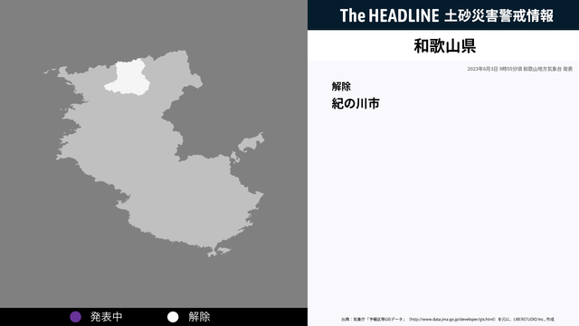 6月3日9時55分、和歌山県の土砂災害警戒情報が解除された