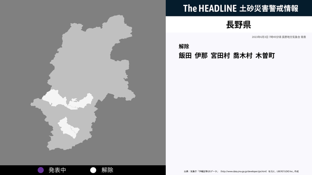 6月3日7時45分、長野県の土砂災害警戒情報が解除された