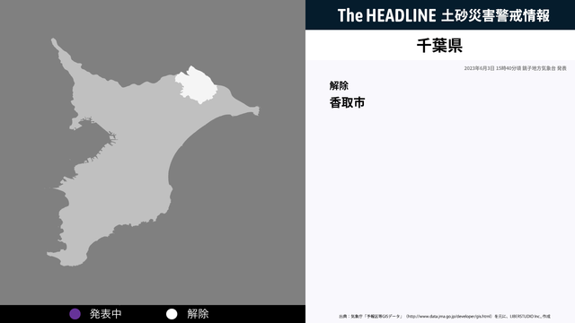 6月3日15時40分、千葉県の土砂災害警戒情報が解除された