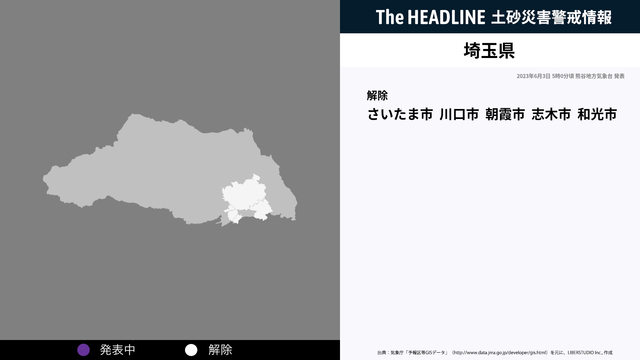6月3日5時0分、埼玉県の土砂災害警戒情報が解除された