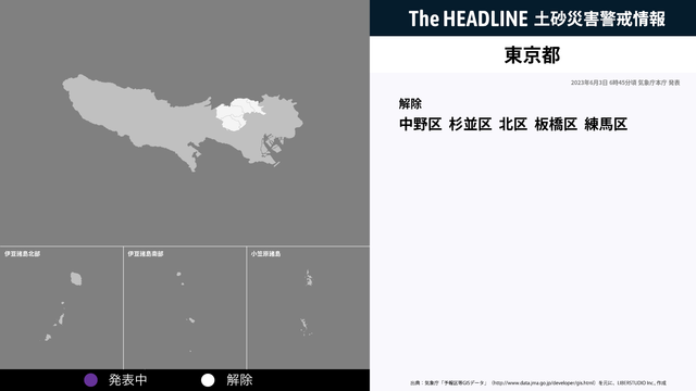 6月3日6時45分、東京都の土砂災害警戒情報が解除された