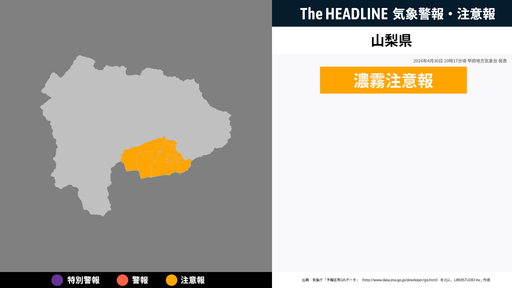 6月9日11時2分、甲府地方気象台は、警報・注意報に先立ち注意・警戒を呼びかけるため山梨県に発表していた気象情報を更新した。