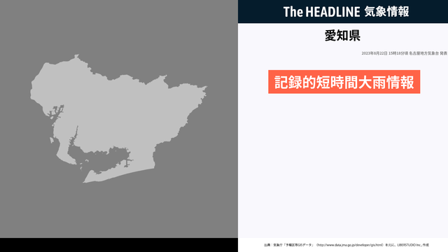 8月22日15時18分、気象庁は愛知県の記録的短時間大雨情報を発表した。