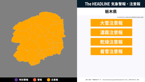 9月4日21時55分、土砂災害の危険性の高まりから宇都宮地方気象台より栃木県に発表されていた、土砂災害警戒情報が解除された。