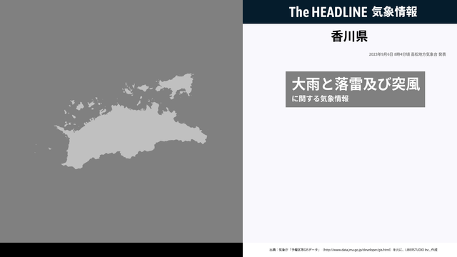 9月6日8時4分、高松地方気象台は、香川県に発表されている警報・注意報の経過、予測、防災上の留意点などを解説するために発表していた気象情報を更新した。