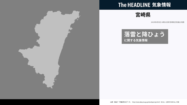 9月9日16時22分、宮崎地方気象台は、宮崎県に発表されている警報・注意報の経過、予測、防災上の留意点などを解説するために発表していた気象情報を更新した。